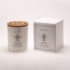 The painted and silkscreened glass container easily finds a second life and a new use at the end of the candle.