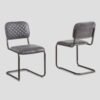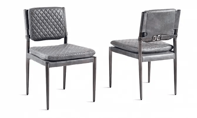 Chair with metal frame and genuine leather button-tufted covering in Mercury Grey color. Handcrafted.