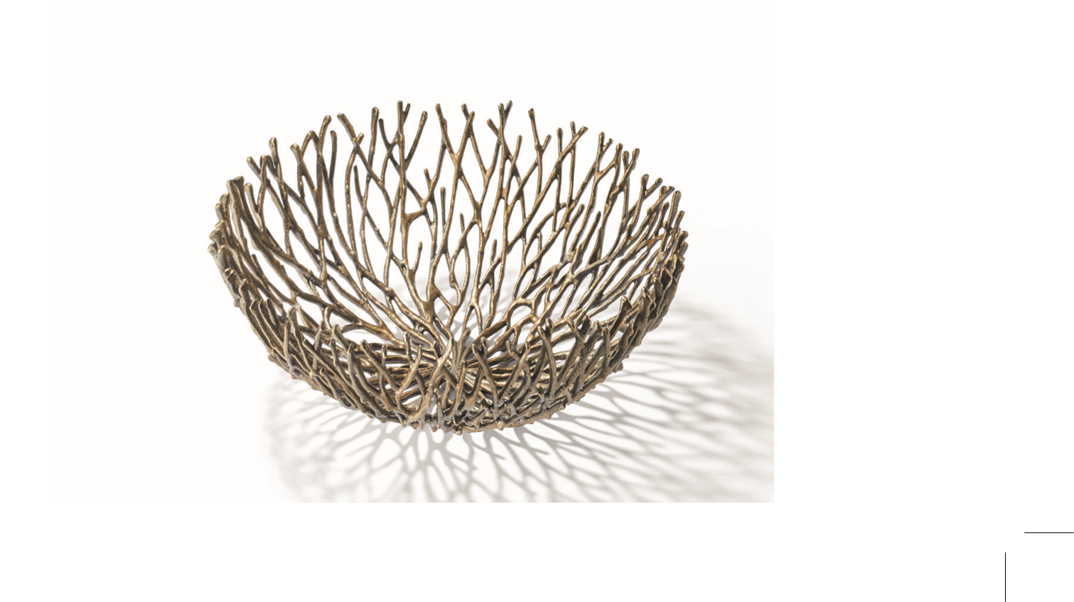 Made from gold-coloured metal, its open structure creates a fascinating interplay of light and shadow. On both light and dark surfaces, it casts graphic patterns that change harmoniously with the time of day and surroundings. Whether on the dining table, the sideboard or as a centrepiece on a festively laid table – CORAL looks like a work of art in everyday life.