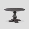 The structure is in metal with a bronzed finish while the top is in wood with a dark gray finish
