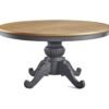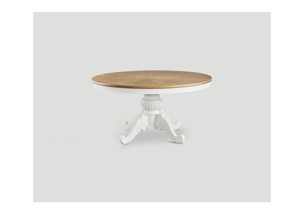 The base is aged white lacquer while the top is in oak with a light vintage finish.