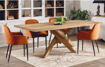 Rectangular table made of layered wood and solid Conifer wood. Handcrafted.