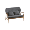 Upholstered shaped sofa with genuine leather covering and 3 cushions. Caption finish and studs. Wooden feet on wheels. Handcrafted.