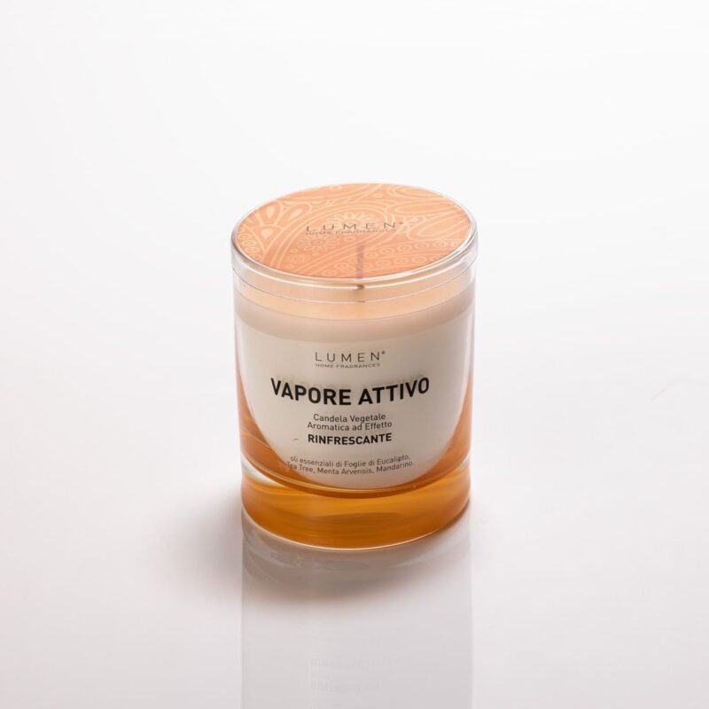 100% Natural Essential Oils. Aromatic Vegetable Candle with a REFRESHING effect. With essential oils of Eucalyptus Leaves, Tea Tree, Mentha Arvensis, Mandarin. The lightness of the water vapor released by the flame carries the essential oils into the environment, amplifying their natural effect. A valid aid in preventing the formation of bad odors created by humidity, microorganisms, mold, smoke and other unwanted odors in the home. The evaporating essential oils provide an aromatic base with a Refreshing effect and release a fresh and citrusy scent.