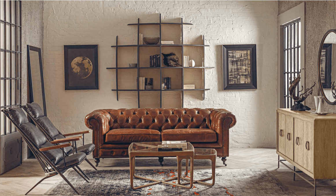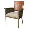 Upholstered armchair covered in genuine leather. Metal frame and wooden armrests. Handcrafted.