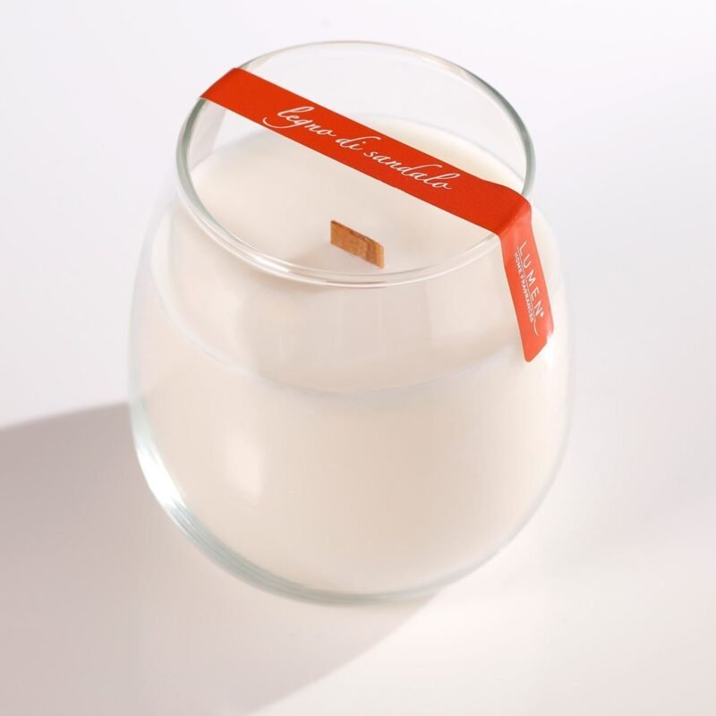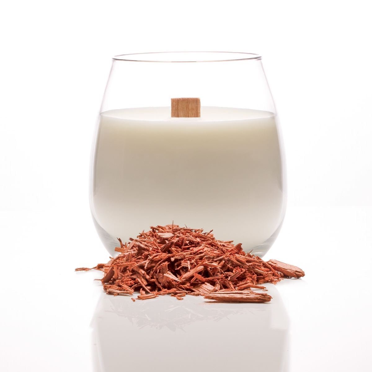 Sandalwood Candle in Vegetable Wax with Wooden Wick SOUND WICK that crackles when lit. Sandalwood is a tree native to Tropical Asia from which the precious oil is extracted. Known in pharmaceuticals for over 4000 years, today it is a leading oil in traditional perfumery. In candles, Sandalwood oil is combined with Cedarwood oil to better convey its resinous and amber note. Scent of creativity, meditation and spiritual serenity.
